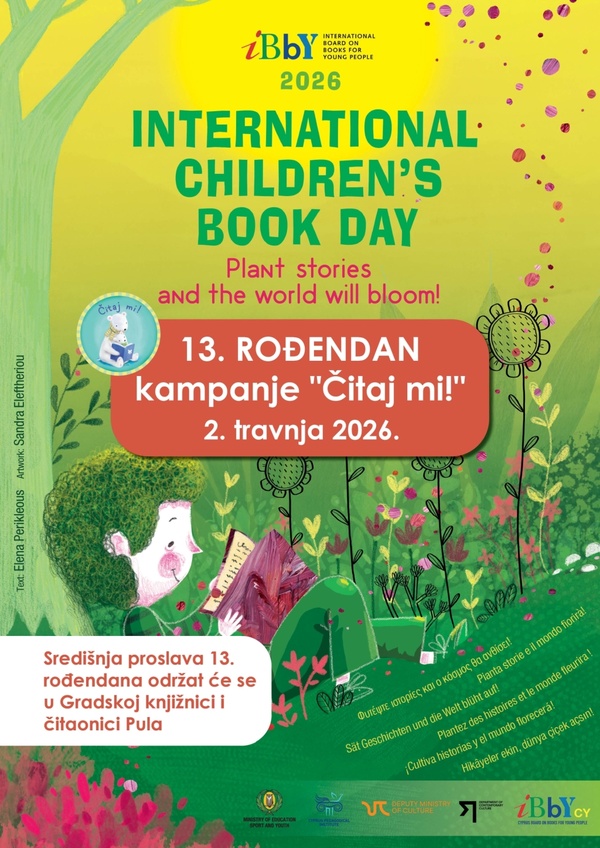 Središnja proslava 13. rođendana nacionalne kampanje za poticanje čitanja naglas djeci od rođenja Čitaj mi! održat će se u Gradskoj knjižnici i čitaonici Pula 2. travnja 2026., na Međunar…