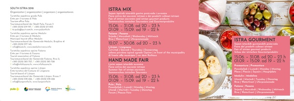 SAJAM ISTARSKIH SUVERNIRA Turistička zajednica grada Pule već 13. godinu za redom organizira ljetni sajam istarskih suvenira – Istrian hand made. Na Ljetnom sajmu obrtnika svaki tjedan od 15…