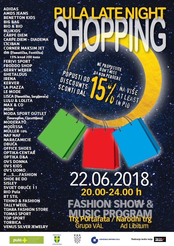 Ovogodišnja akcija Late Night Shopping održat će se u petak, 22. lipnja 2018. godine, a u ovogodišnjoj akciji sudjeluju 53 trgovine u centru grada koje će biti otvorene od 20 sati do po…