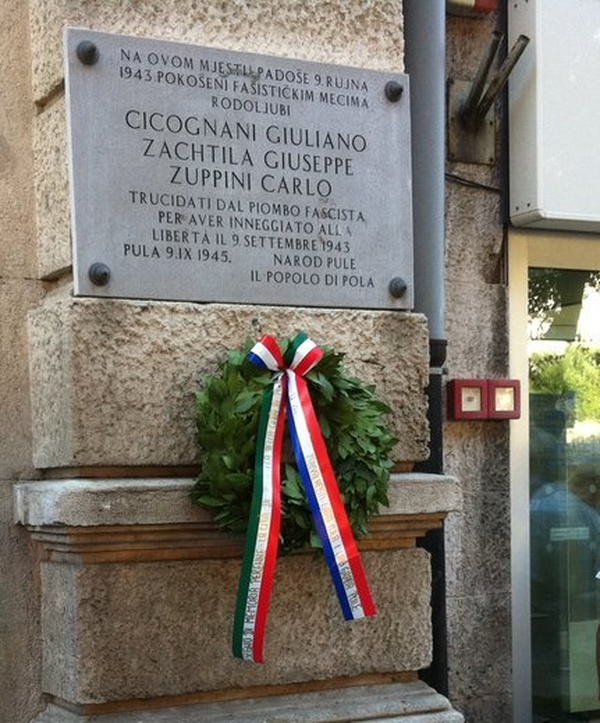 Polaganje vijenaca povodom 75. obljetnice pogibije pulskih antifašista Cicognani Giuliana, Zachtila…