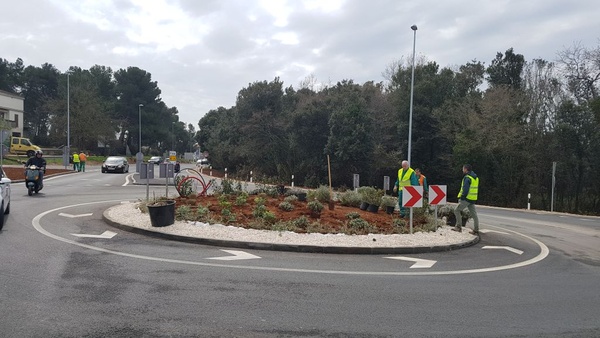 U sklopu radova na uređenju javnih zelenih površina, koji se intenziviraju dolaskom povoljnih proljetnih vremenskih uvjeta, danas je mediteranskim biljem obogaćen rotor na križanju Vodnjanske …
