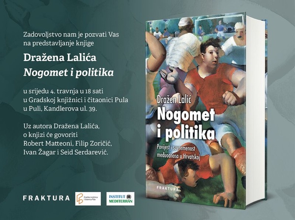 Knjiga Dražena Lalića Nogomet i politika bit će predstavljena u srijedu, 4. travnja 2018. u 18 sati u Središnjoj knjižnici. Uz autora, o knjizi će govoriti Robert Matteoni, Filip Zoričić, Ivan…