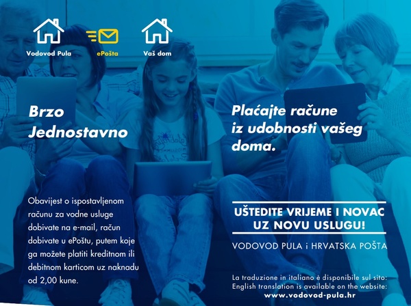 Vodovod Pula uvodi novu mogućnost plaćanja putem ePošte