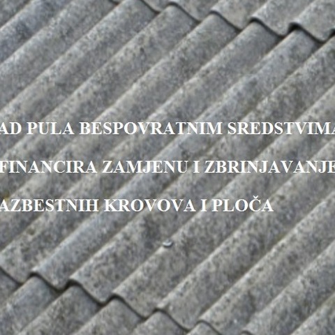 Grad Pula objavljuje Javni poziv za dostavu prijava za sufinanciranje zamjene krovnih pokrova koji sadrže azbest i zbrinjavanja azbestnih ploča …