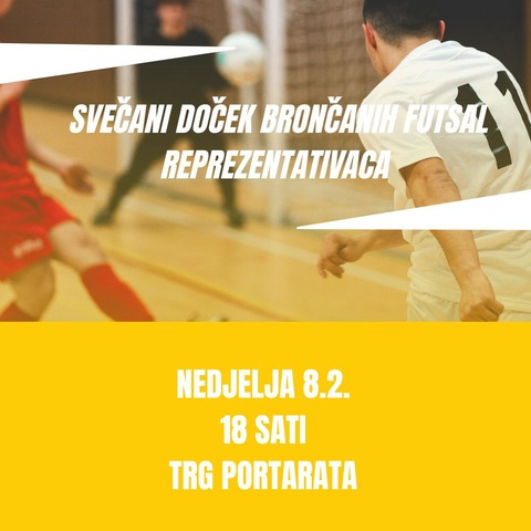 U nedjelju na Portarati svečani doček brončanih hrvatskih futsal reprezentativaca, Puljana Nike Vukmira i Davida Mataje
