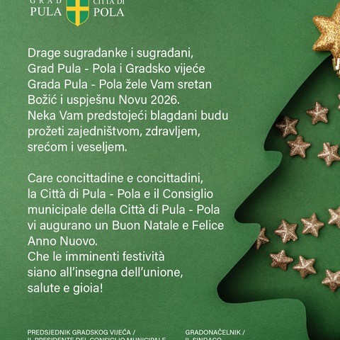 Grad Pula obavještava javnost da je dana 22. prosinca 2025. godine donesena odluka o produženju radnog vremena ugostiteljskih objekata iz …