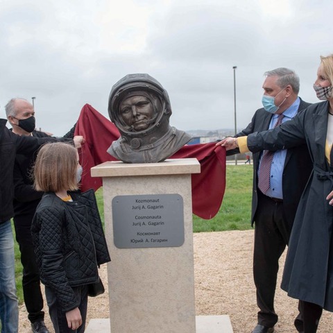 Otkrivena bista kozmonauta Jurija A. Gagarina i planetarna šetnica sa Sunčanim satom U sklopu Tjedna kozmonautike što se održava na …