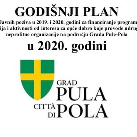 Objavljen Godišnji plan raspisivanja Javnih poziva za financiranje programa, projekata, manifestacija i aktivnosti od interesa za opće dobro koje provode udruge i ostale neprofitne organizacije na području Grada Pule-Pola u 2020. godini