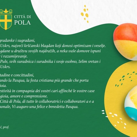 Povodom nadolazećeg blagdana Uskrsa, gradonačelnik Pule Filip Zoričić uputio je čestitku svim sugrađanima: Poštovane sugrađanke i sugrađani, pred nama je …