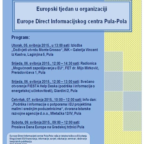 Sljedećeg se tjedna u organizaciji Europskog centra za informiranje (EDIC) Pula-Pola organizira Europski tjedan za građane u cilju proslave Dana …