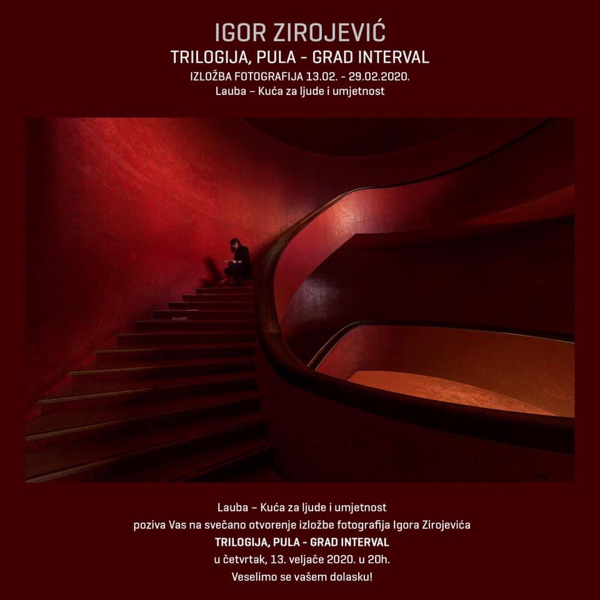 U četvrtak, 13. veljače 2020. u 20 sati, u zagrebačkoj Laubi - kući za umjetnosti i ljude, svečano se otvara izložba fotografija "Trilogija, Pula- Grad Interval", pulskog fotografa i arhitekta Igora Zirojevića.