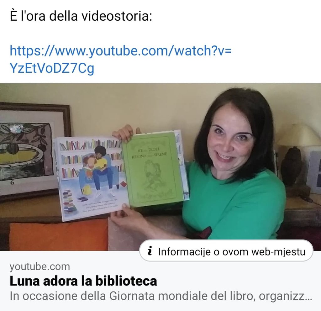 Noć knjige nastavljen je programom za najmlađe. U 13 sati na YouTube kanalu Knjižnice premijerno su objavljene četiri videopričaonice – dvije na hrvatskom i dvije na talijanskom jeziku. Tema ovogodišnje U skladu s ovogodišnjom središnjom temom videopričaonice Klikni da ti nešto ispričamdonose priče o nekim ženama koje su vidjele svijet oko sebe na nov, drugačiji, zanimljiviji način i svojim primjerima utjecale na svijet kakav danas poznajemo. Uz to, na talijanskom jeziku predstavljamo slikovnicu Luna adora la biblioteca(Gallucci, 2018.) i priču iz knjige 20 bambine straordinarie che hanno cambiato il mondo(Edizioni Theoria, 2018.).