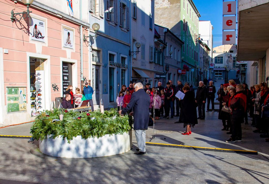 Upaljena je i četvrta, posljednja adventska svijeća na vijencu kod fontane u Ciscuttijevoj ulici u Puli u nedjelju, 18. prosinca 2022. Svečanosti je nazočio zamjenik gradonačelnika Grada Pule Bruno Cergnul, a događaj je uveličalo Kulturno umjetničko društvo Lino Mariani.