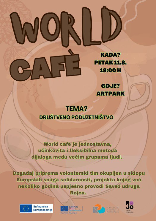 Više o događaju saznajte na poveznici : World Caffe s temom društvenog poduzetništva u Art Parku