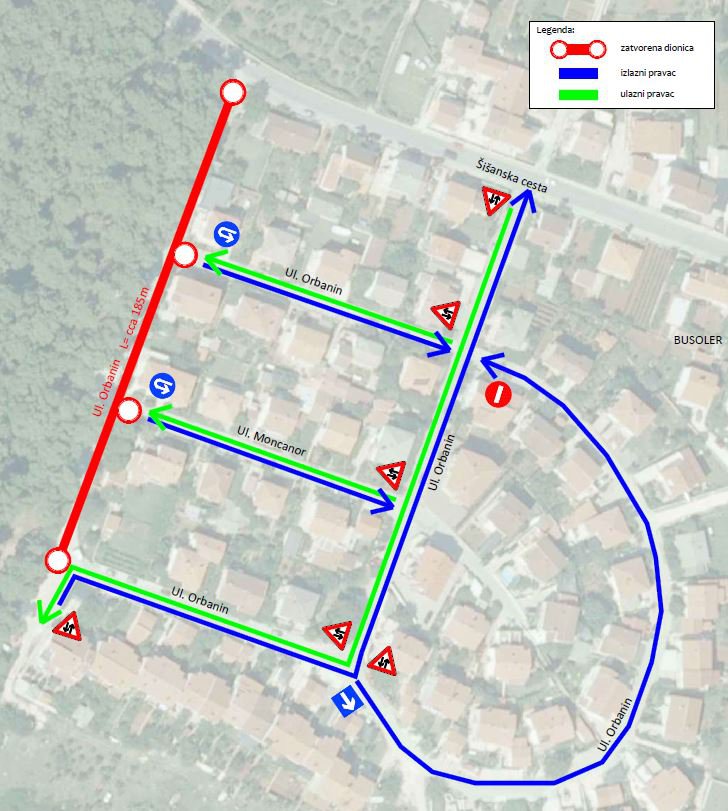 Privremena regulacija uvodi se zbog sanacije cjelokupne kolničke konstrukcije od raskrižja sa Šišanskom cestom do krajnjeg ogranka Ulice Orbanin, okvirne dužine 185 metara.