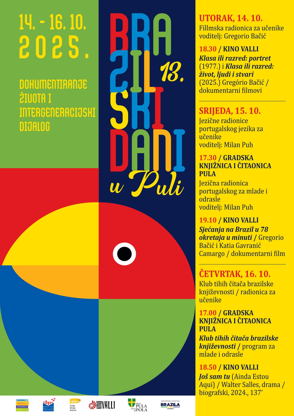 Kao i prethodnih godina, Danispajaju Pulu i Istru s Brazilom kroz višeslojni kulturni program: od filmskih radionica za učenike, preko jezičnih radionica sa srednjoškolcima i građanima do susreta uz knjige i prikazivanja filmova koji otvaraju prostor za razgovor o identitetu, pamćenju i kulturnim mostovima koje već niz godina stvara ova kulturna manifestacija.