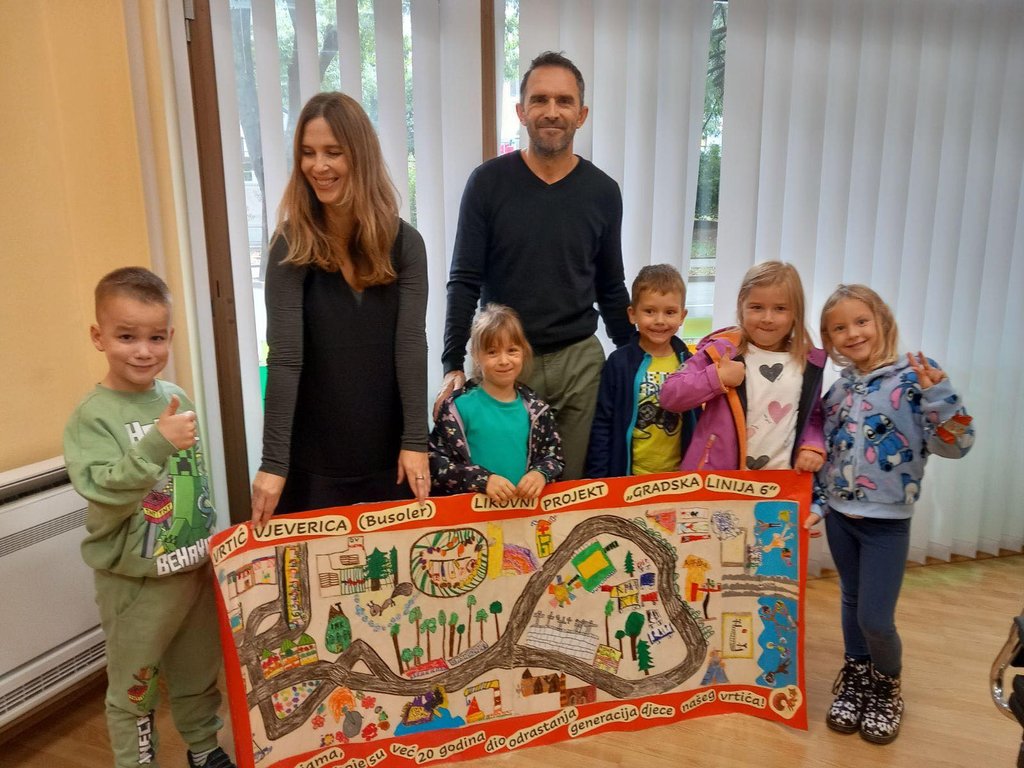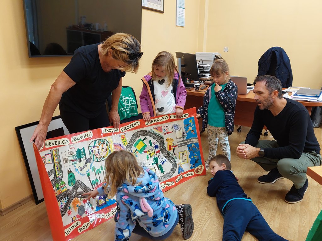 Uz kratko objašnjenje o našem poslu mališanima smo uručili simbolične poklone, ali i mi smo dobili predivan poklon – plakat linije 6 kojom putuju iz vrtića u grad i na more. Plakat će biti izložen u prostorijama Pulaprometa kao podsjetnik na važnost dječje perspektive i njihov doprinos zajednici.