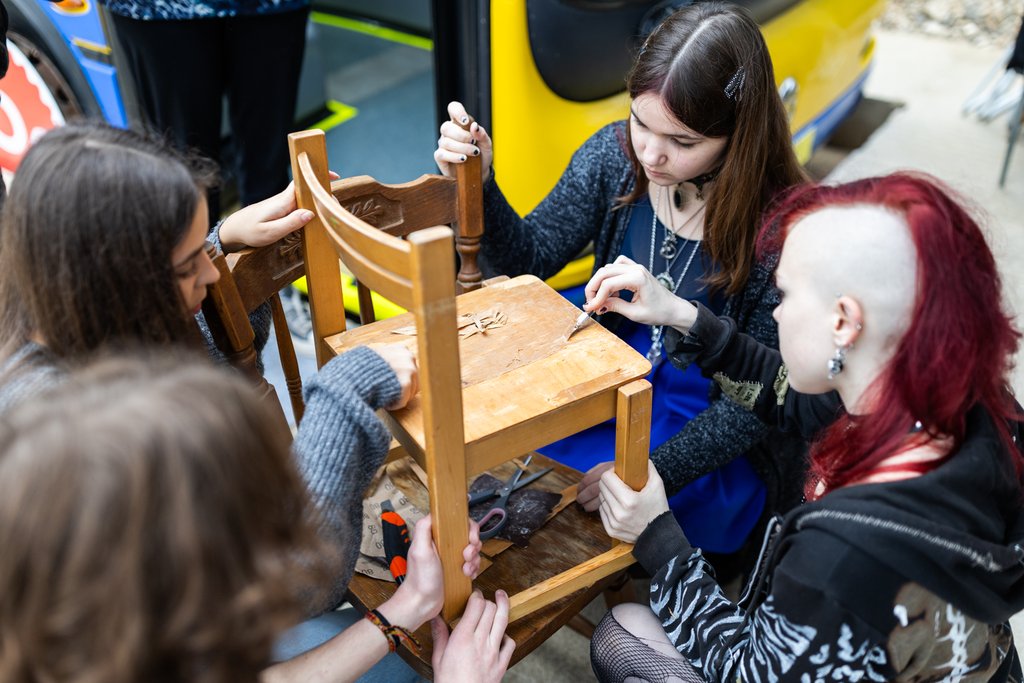 Transformacija autobusa u prostor namijenjen razmijeni korisnih predmeta rezultat je zajedničkog rada i kreativnosti brojnih suradnika. Početne grube radove na oblikovanju autobusa te montažu rasvjetnih tijela izveli su učenici Industrijskoobrtničke škole Pula. Idejno, atraktivno rješenje osmislio je tim iz Studija Sonda, dok su završni dizajn i slogane kroz više zajedničkih radionica oblikovali učenici Škole primijenjenih umjetnosti i dizajna Pula.