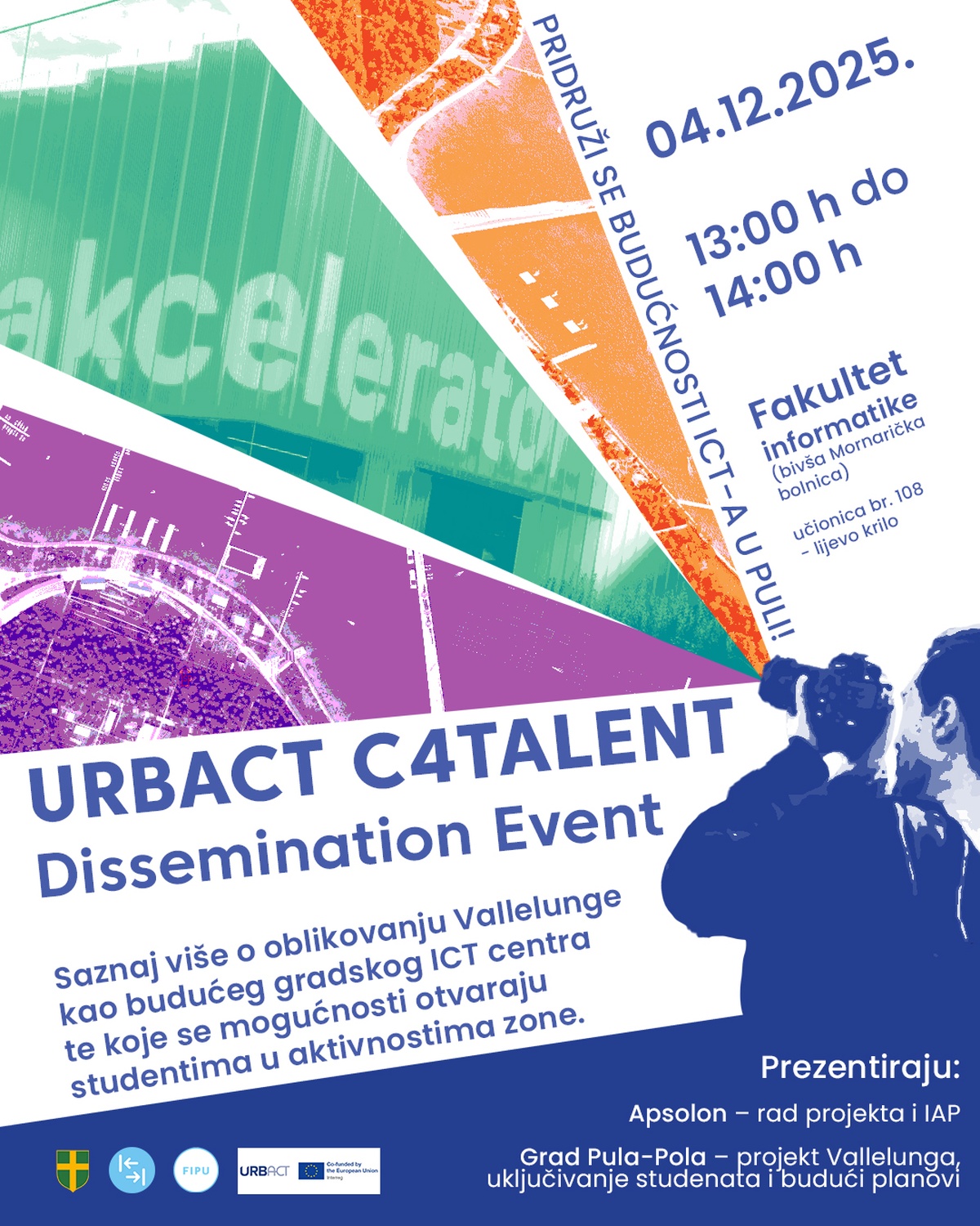 U četvrtak, 04. prosinca u 13:00 sati, na Fakultetu informatike u Puli održat će se predstavljanje rezultata projekta URBACT IV – C4TALENT.
