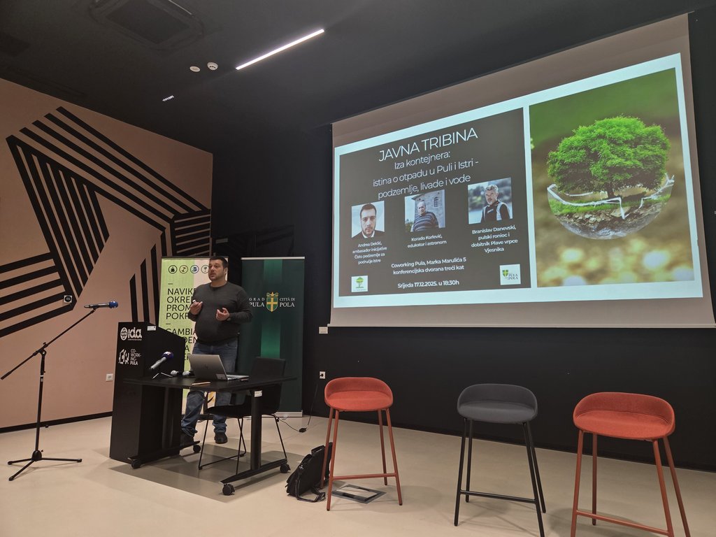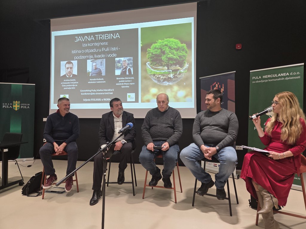 Javna tribina pod nazivom „Iza kontejnera – istina o otpadu u Puli i Istri: podzemlje, livade i vode“ održana je jučer u Coworking centru u Puli i okupila je velik broj građana zainteresiranih za problem otpada i njegov stvarni utjecaj na okoliš. Tribinu su organizirali Grad Pula i Pula Herculanea s ciljem poticanja otvorenog i informiranog dijaloga o ovoj važnoj temi.