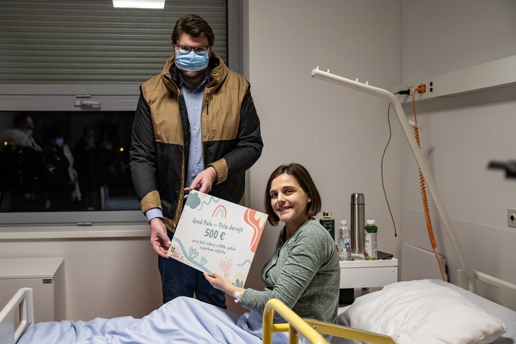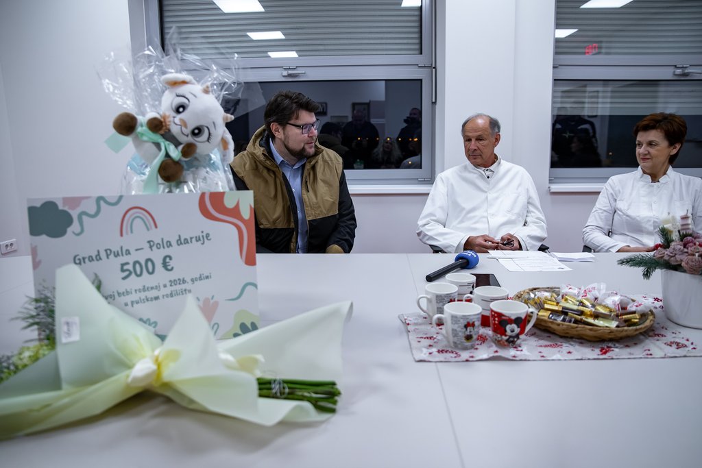 Pulski gradonačelnik Peđa Grbin obišao je prvu bebu u 2026. godini i čestitao na prinovi u obitelji te darovao djevojčicu simboličnim čekom od 500 eura i poklon paket pelena, a majci je uručeno i cvijeće.– Grad Pula je prvoj bebi rođenoj u ovoj godini osigurao poklon-bon u vrijednosti od 500 eura, paket pelena te cvijeće za majku. Ovim putem upućujem iskrene čestitke roditeljima uz želje za sretnim i ispunjenim zajedničkim životom, a malenoj Heleni, s obzirom na datum rođenja, želim da je u budućnosti prate brojne lijepe proslave – jer ih je itekako zaslužila. Nekada se govorilo da je za odgoj djeteta potrebno cijelo selo, a danas, kada živimo drugačije, može se reći da je potreban cijeli grad. Upravo to je naša poruka – da smo uz zdravstvene djelatnike, ali i uz roditelje i djecu. Posebno mi je važno istaknuti da je danas stupila na snagu odluka usmjerena na dodatnu podršku onima koji žele postati roditelji. Riječ je o izmjenama akata vezanih uz medicinski potpomognutu oplodnju, kojima smo povećali iznos sufinanciranja za postupke u privatnom sustavu na 1.000 eura te omogućili da roditelji više ne moraju prolaziti kroz postupke propisane aktima HZZO-a. Nažalost, praksa pokazuje da mnogi parovi ne mogu dobiti odgovarajuću skrb kroz postojeći sustav, ponekad ni unutar Hrvatske. Stoga Grad Pula želi biti snažna podrška roditeljima i svima koji to žele postati, kako bi im pomogli da ostvare tu želju – poručio je gradonačelnik.