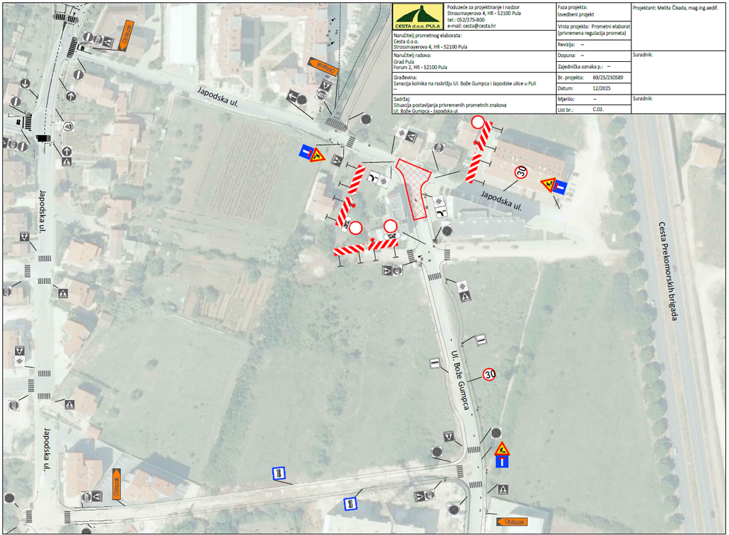 Od danas, 19. siječnja 2026. Grad Pula – Pola započinje s radovima sanacije kolnika na raskrižju Japodske ulice i Ulice Bože Gumpca.