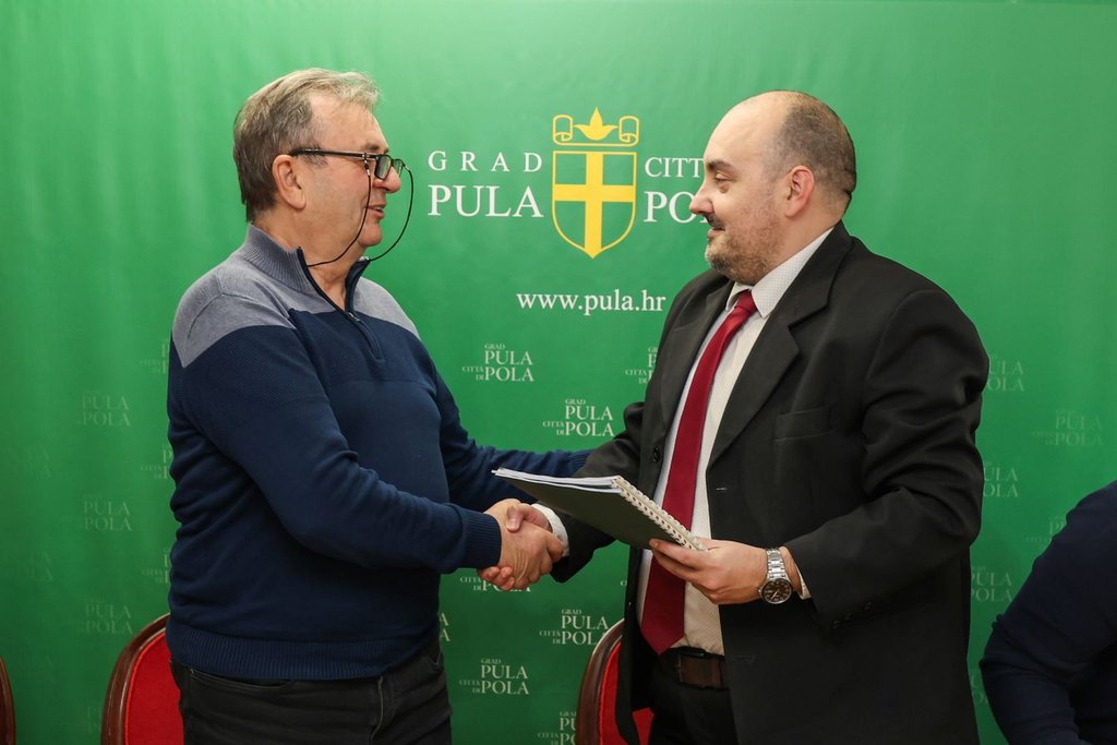 Predstavnici Sindikata Istre, Kvarnera i Dalmacije i Sindikata komunalnih, prometnih i srodnih djelatnosti Hrvatske, te direktor Monte Gira Darko Bijelić, potpisali su danas u pulskoj Komunalnoj palači novi kolektivni ugovor za djelatnike Monte Gira.