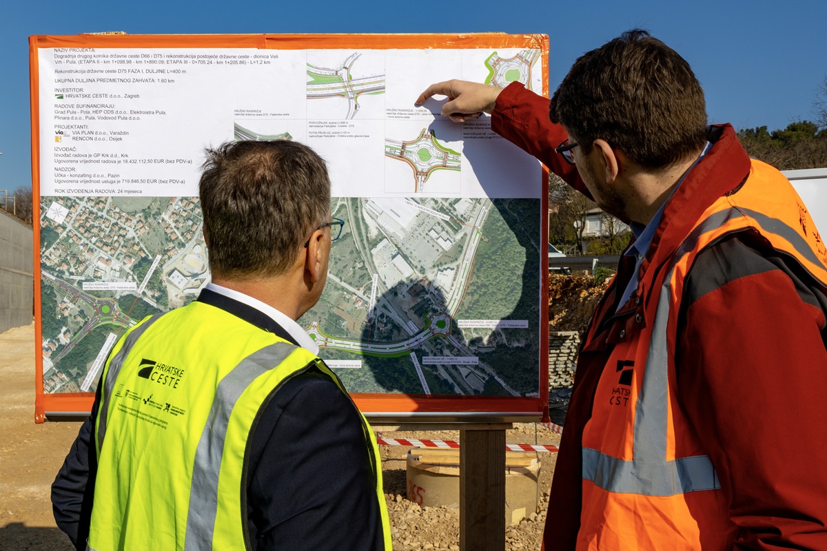 Gradonačelnik Grada Pule Peđa Grbin je uz potpredsjednika Vlade i ministar mora, prometa i infrastrukture Olega Butkovića, istarskog župana Borisa Miletića i predsjednika Uprave Hrvatskih cesta Ivice Budimira obišao radove na rekonstrukciji državne ceste Veli Vrh – Pula, jednom od najvećih prometnih zahvata u gradu i važnom ulazu u Pulu. Projekt vrijednosti 18 milijuna eura odvija se predviđenom dinamikom, a završetak ove dionice planiran je do kraja godine.