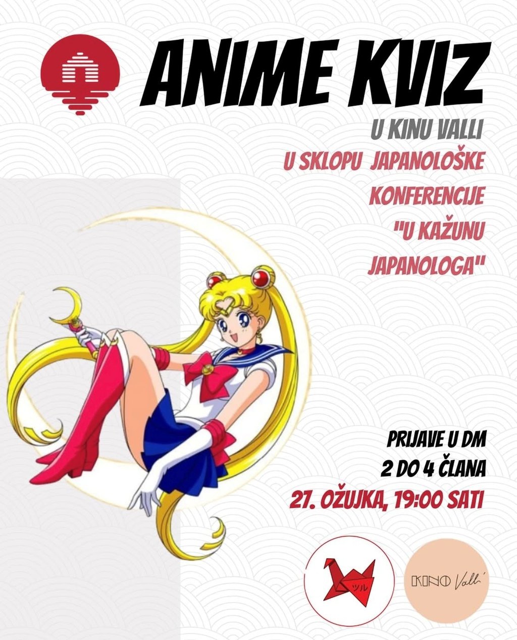 U petak, 27. ožujka održava se šesti anime kvizu Kinu Valli u 19:00. Kviz je dio programa japanološke konferencije "U kažunu japanologa" i organizira ga udruga studenata azijskih studija Tsuru Pula. Prijaviti se možete u DM Instagrama @tsurupula tako da pošaljete naziv ekipe, broj članova (maksimalno 4 člana po ekipi) i kontakt mobitel. Participacija je besplatna. Čekaju vas interesantne nagrade!