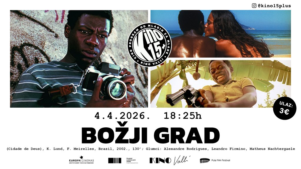 Mladi su ovoga puta izabrali film Božji grad(Cidade de Deus) iz 2002. godine u režiji Fernanda Meirellesa i Kátije Lund. Smatra se izuzetno važnim ostvarenjem svjetske kinematografije i broji četiri nominacije za Oscara. Radnja se bazira na istoimenom romanu Paula Linsa, koji je odrastao u stvarnoj faveli Cidade de Deus u Rio de Janeiru uz sveprisutni kriminal i bezakonje. Film je sniman na stvarnim lokacijama u najsiromašnijim četvrtima Rija i ističe se gotovo dokumentarističkim stilom dok mu dodatnu snagu daje činjenica da su mnogi izvođači naturščici, ljudi iz stvarnih favela, čime se postiže iznimna razina autentičnosti i sirove uvjerljivosti. Pratimo dvojcu mladića 1970-ih godina koji biraju različite životne puteve. Rocket je mladi fotograf koji dokumentira sve veće nasilje povezano s drogom u svom susjedstvu. José "Zé" Pequeno ambiciozni je diler droge koji koristi Rocketa i njegove fotografije kako bi povećao svoju slavu dok izbija rat za teritorij s njegovim suparnikom.