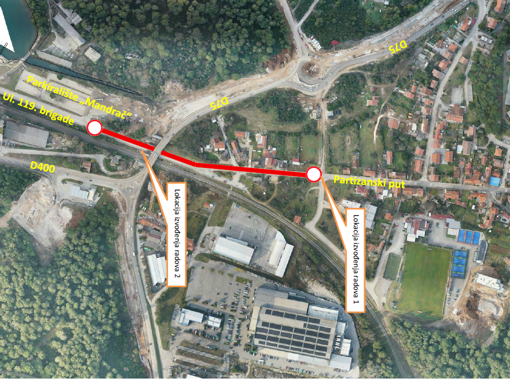 Zabrana će biti na snazi od 27. do 30. travnja 2026. godine, na dionici ispod mosta, između parkirališta „Mandrač” i raskrižja buduće spojne ceste D75, Partizanskog puta i skretanja za pizzeriju Tivoli.