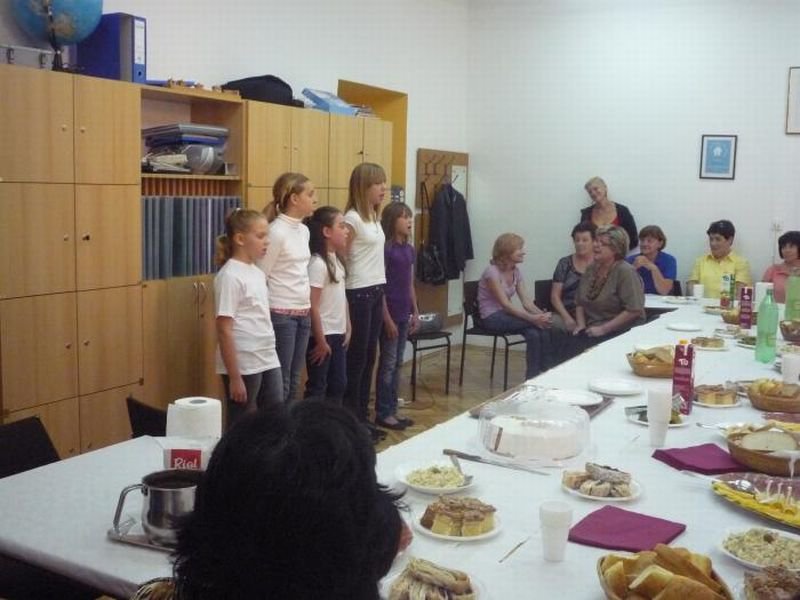 Susret s bivšim radnim kolegicama i kolegama i upoznavanje mladih učitelja je bio pun emocija. Solistička skupina sa solisticom Gloriom Suton, učenicom IVb razreda pod vodstvom Tanje Uležić razveselila je goste prekrasnom izvedbom pjesme Srića u dvoglasju. Gabrijela Janjić, učenica Vb recitirala je kanat Oj divojko koji je izmamio gromoglasan pljesak.