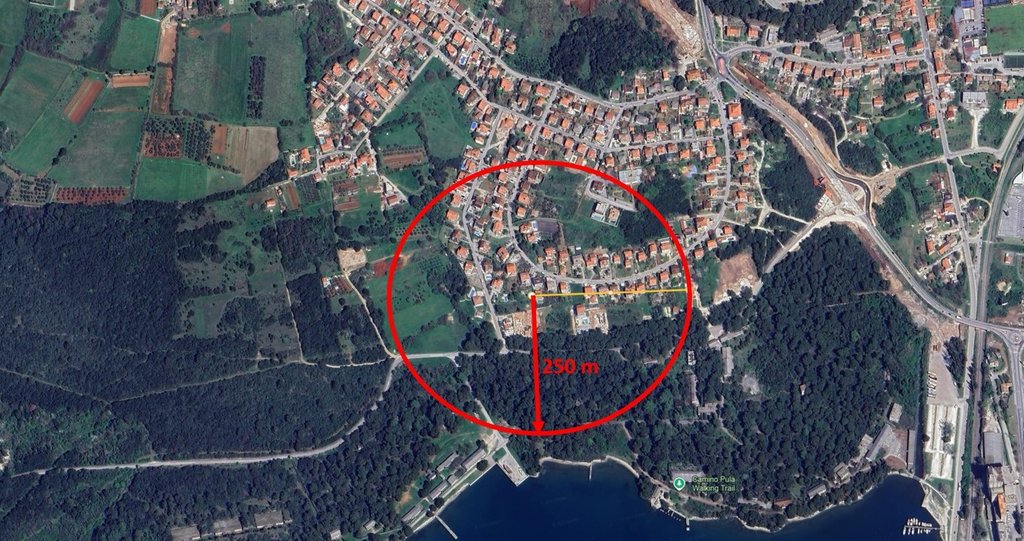 CRVENA ZONA obuhvaća radijus od 250 metara od mjesta na kojemu se nalazi eksplozivno sredstvo, te će biti provedena evakuacija građana područja u Puli, naselje Veli Vrh: dijelovi Ulice Vallelunga, Ulica Braće Leonardelli, Ulica Samagher, te jugozapadni ogranci sa Sponzine ulice.