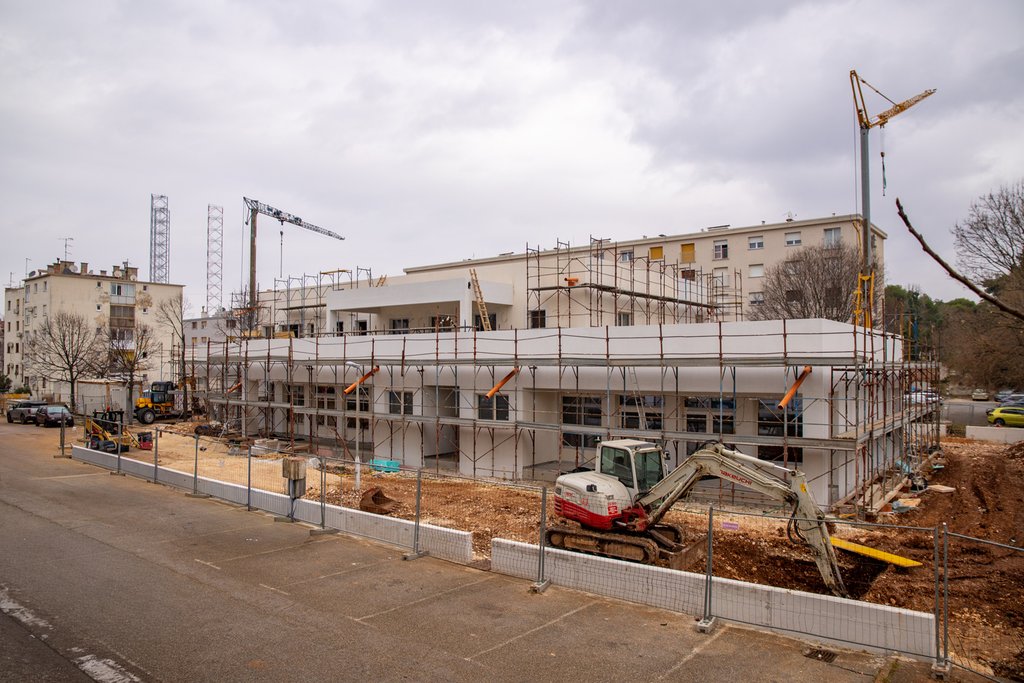 Ovdje smo ispred vrtića Sisplac za kojeg vidite da je u poodmakloj fazi izgradnje. On će biti gotov i spreman za pedagošku godinu 2026./2027. kako bi se u njega moglo upisati još sedam skupina, četiri vrtićke i tri jasličke. Nije dovoljno samo osigurati da vrtići budu besplatni, potrebno je osigurati da u vrtićima u Gradu Puli bude dovoljno mjesta za svu našu djecu.